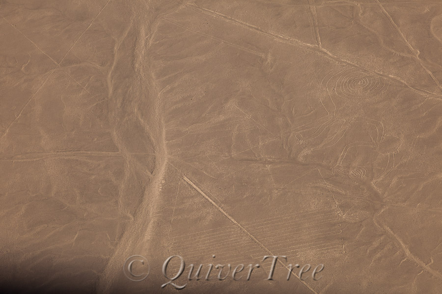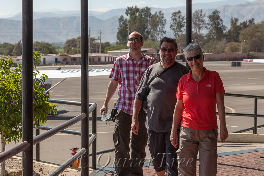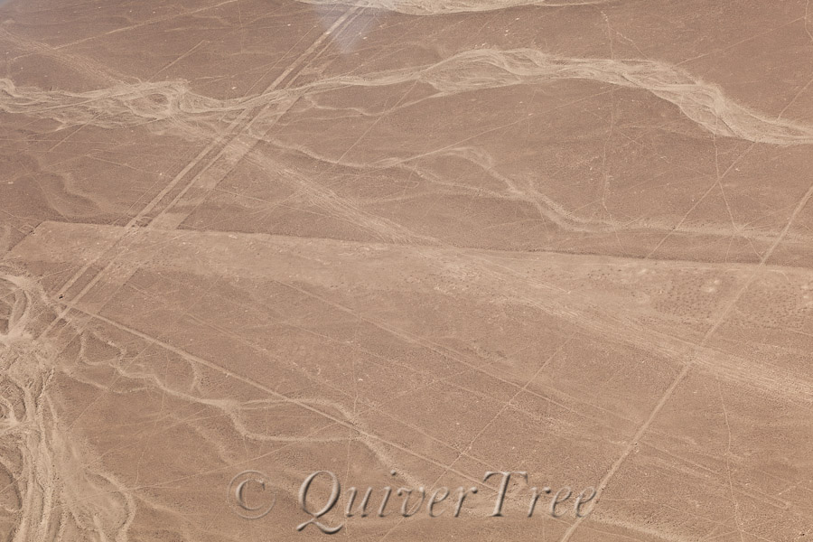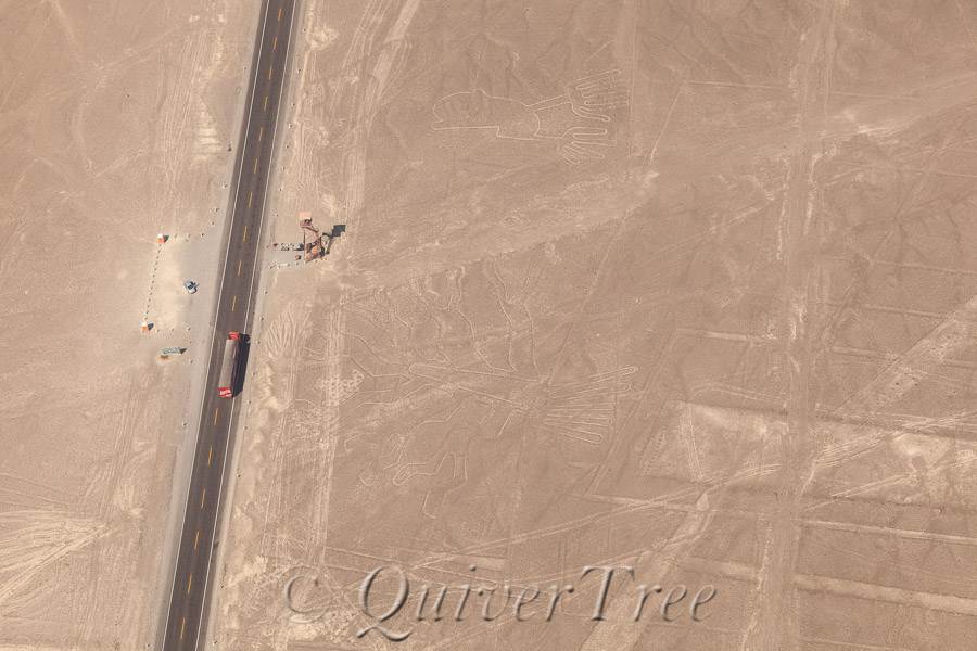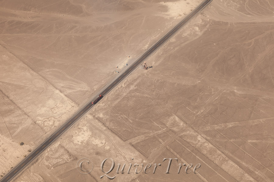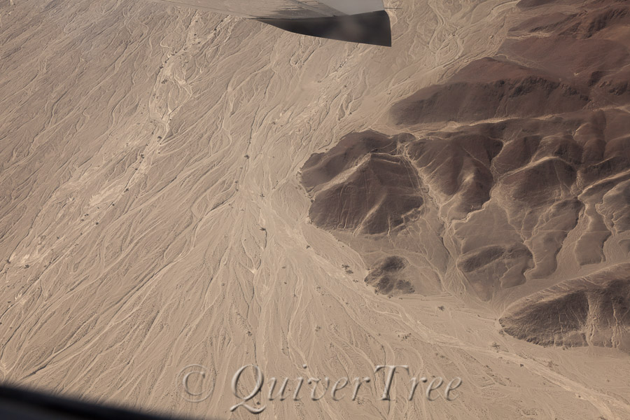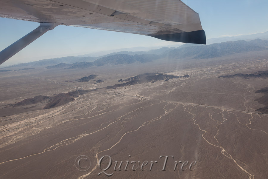 Der Flug selbst ist weniger erhellend, als ich mir das erhofft hatte. Es hängt sicher auch damit zusammen, dass wir kurz nach Mittag unterwegs sind. Eine tiefstehende Sonne am frühen Morgen oder kurz vor Sonnenuntergang hätte den Linien mehr Struktur gegeben. So ist es, trotz der Erklärungen und Hinweise des Piloten, gar nicht einfach, die einzelnen Figuren am Boden auszumachen. Nach einer halben Stunde sind wir zurück auf der Erde. Manchen aus unserer Gruppe, die von ihrem Flug zurückkommen, ist die Erleichterung anzusehen.