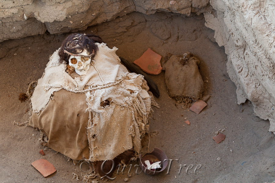 Wir besuchen heute verschiedene Stätten der indianischen Hochkulturen. Zunächst geht es zum Cementerio Chauchilla (Necropolis de Chauchilla), einer Begräbnisstätte aus der Vorinkazeit. Grabräuber haben während der vergangenen Jahre ganze Arbeit geleistet. So gut wie alle Grabbeigaben, die irgendeinen Wert besaßen, wurden entwendet. Übriggeblieben sind lediglich die Gebeine der Toten, die hier nach indianischem Brauch in liegender, hockender oder sitzender Stellung bestattet wurden.