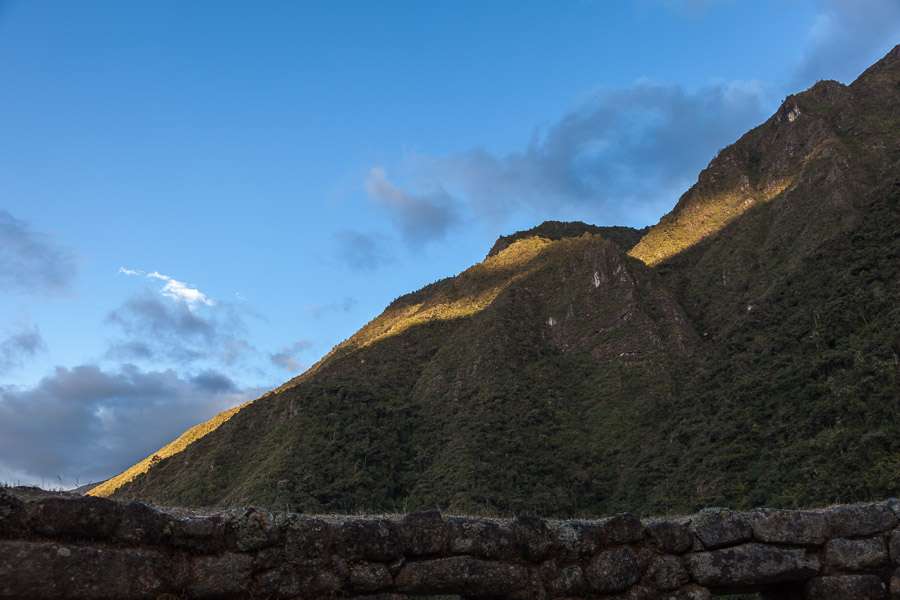 Weiter führt der Weg über steile und hohe Treppenstufen, durch einige Inka-Tunnels, durch verwunschene Märchenwälder. Wir durchqueren die Ruinen von Phuyupatamarca und erreichen schließlich die eindrucksvollen Terrassen von Intipata. Das Landschaftsbild unterscheidet sich komplett von dem des Vortages. Irgendwie spürt man schon die Nähe von Machu Picchu. Gegen 16 Uhr erreichen wir das Camp Wiñay Wayna, dessen zahlreiche Terrassen vielen Zelten Platz bieten. Hier beziehen wir unser letztes Lager vor Machu Picchu.