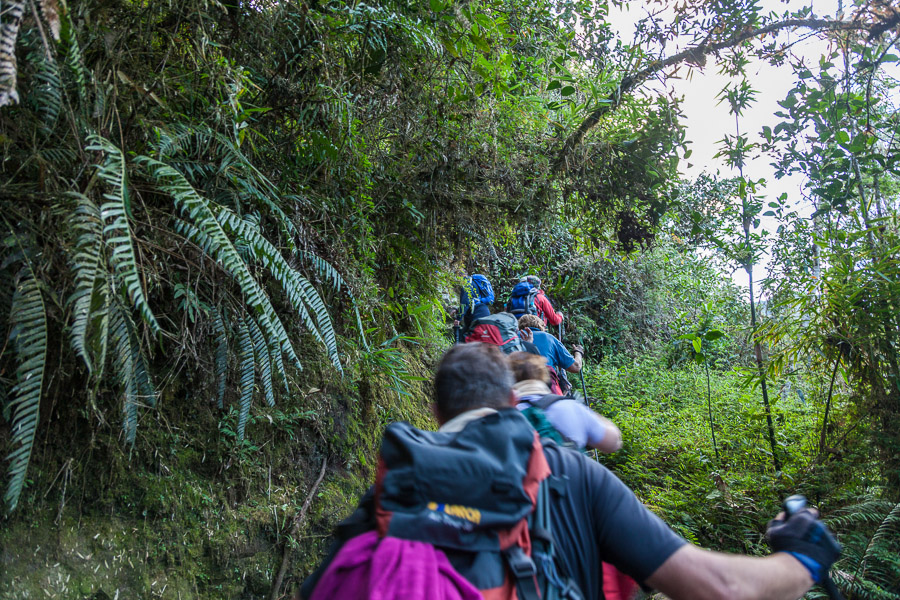 Nach dem Frühstück reihen wir uns in die Schlange der Wartenden ein. Der letzte Abschnitt des Inka-Trails wird besonders streng kontrolliert. Gegen halb sechs Uhr geht es endlich los. Die Lichterschlange aus Stirnlampen setzt sich in Bewegung.