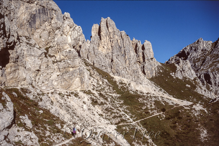 Am Donnerstagabend gegen halb neun starten wir in München. Um Mitternacht breiten wir unweit des Sella-Passes, zwischen Langkofel und Sella-Türmen, unsere Schlafsäcke aus, um ein paar Stunden zu ruhen. Am Freitag um zehn Uhr erreichen wir Alleghe, den Talort für unsere Tour zur Civetta. Beim Aufstieg zur Rifugio Adolfo Sonino al Coldai (2135 m) bringen uns die mit Kletterausrüstung gut gefüllten Rucksäcke das erste Mal ins Schwitzen. Weiter geht es vorbei am Lago di Coldai zum Einstieg der Aste Susatti, den wir um vierzehn Uhr erreichen. Die mächtige Nordwestwand der Civetta flößt uns gewaltigen Respekt ein.