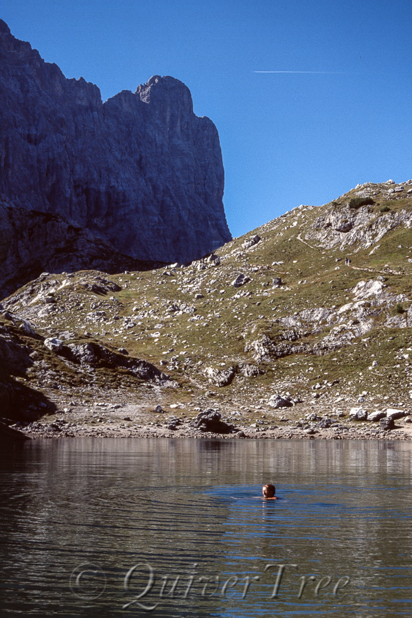 Am Sonntagmorgen um neun Uhr weckt uns lautes Stimmengewirr. Eine Gruppe von Anwärtern auf die Via Ferrata legt die Klettergeschirre an und macht sich fertig für den Einstieg. Wir haben unsere Tour schon hinter uns, es bleibt der lange Abstieg nach Alleghe. Am Lago di Coldai machen wir Rast, ich nehme ein kurzes, kühles Bad. Dann folgt noch der lange „Hatscher“ bis hinab ins Tal. Kurz vor München Stau auf der Autobahn, erst gegen dreiundzwanzig Uhr kommen wir zu Hause an, müde, aber zufrieden.