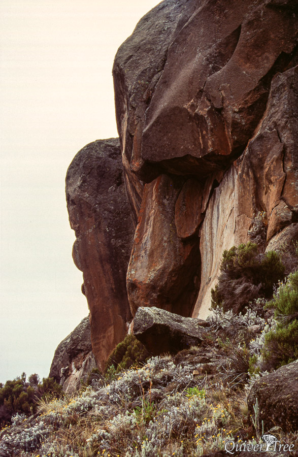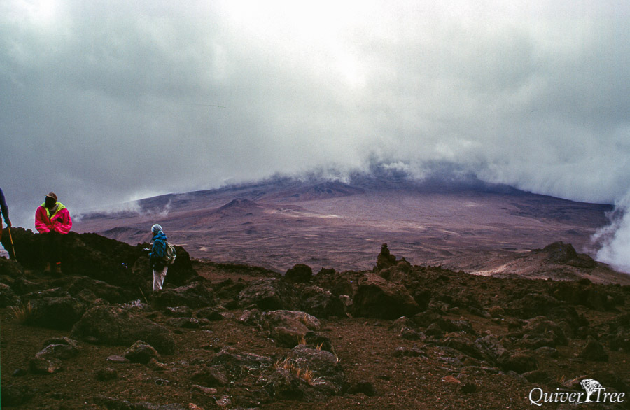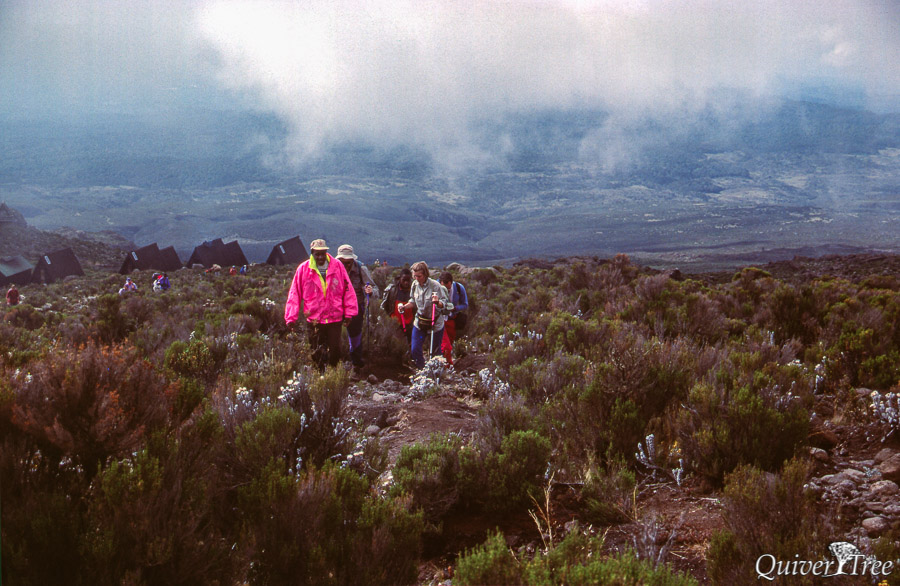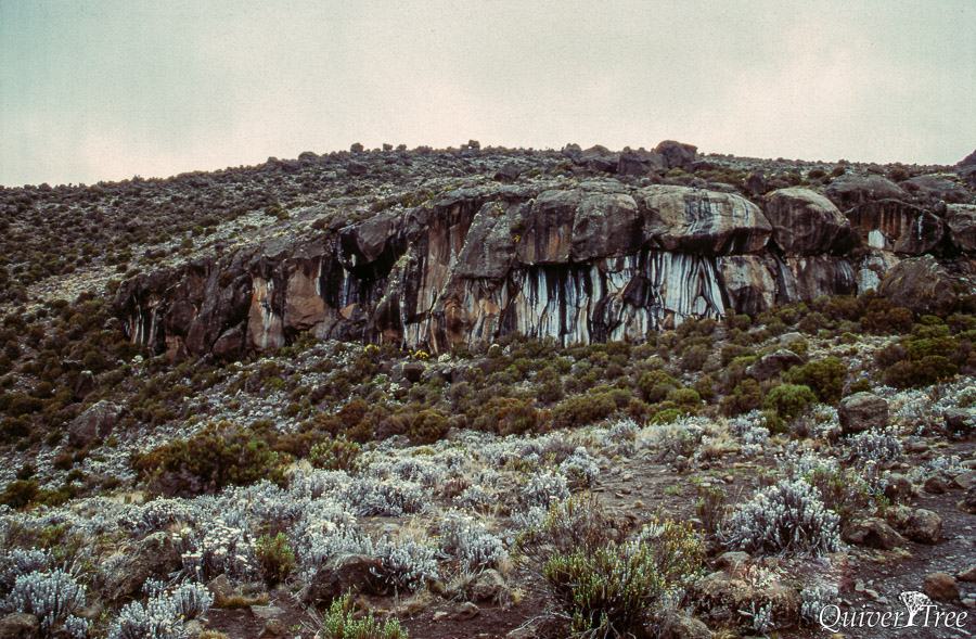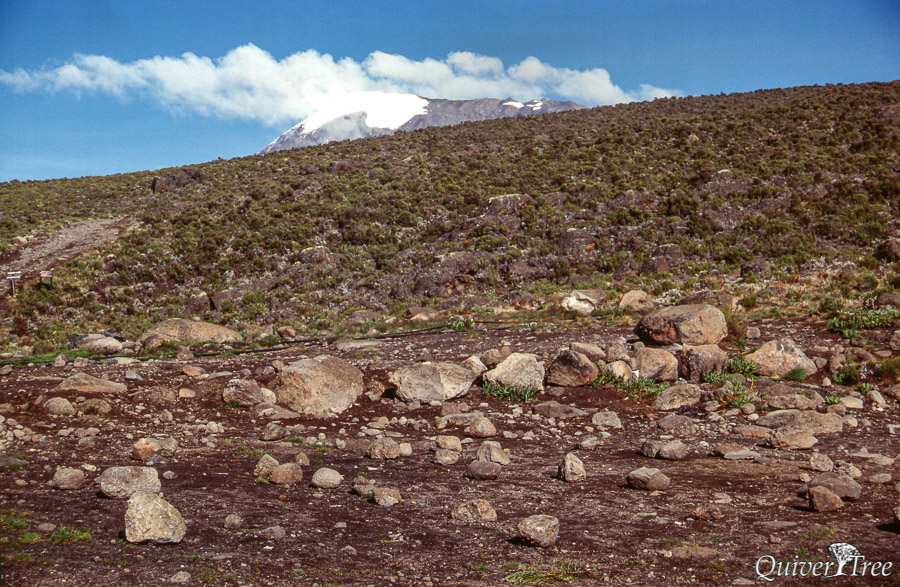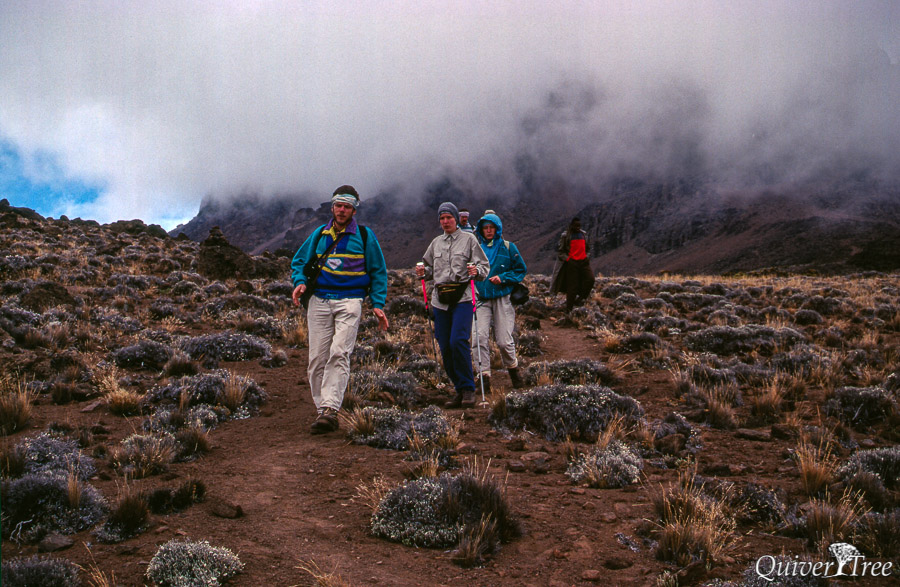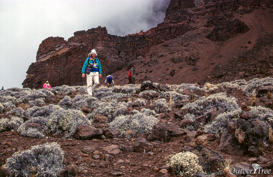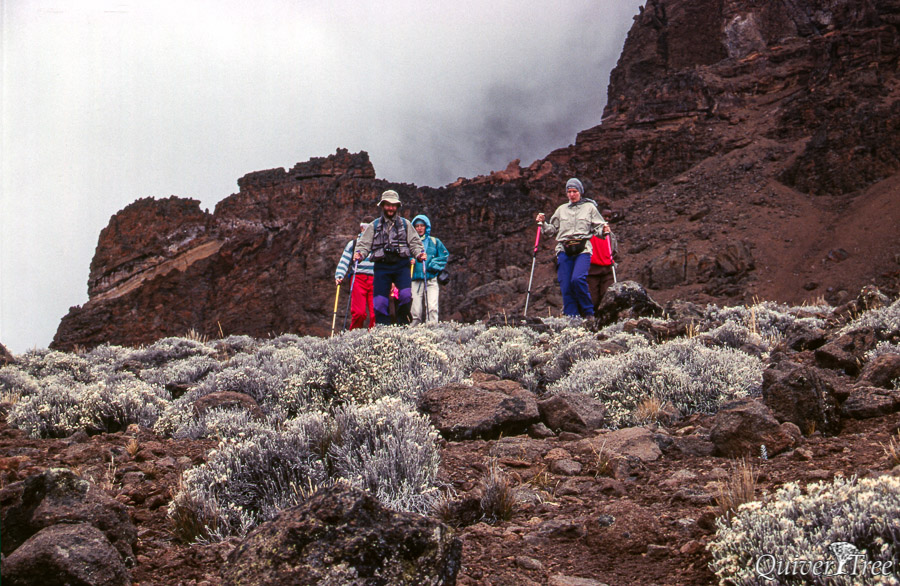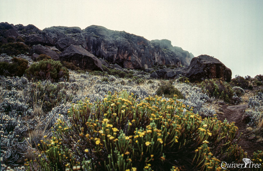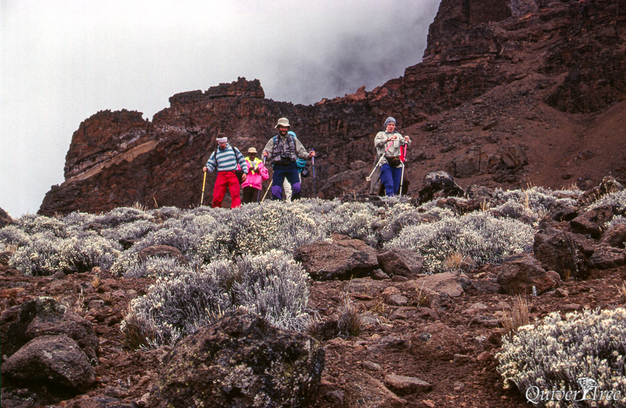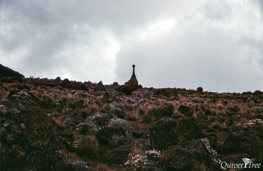 Unser Ziel ist es, bis an den Fuß des felsigen Aufbaus des Mawenzi aufzusteigen. Damit betreten wir heute erstmalig die alpine Steinwüste. Die Vegetation wird immer spärlicher und nur extreme Überlebenskünstler schaffen es, hier noch Fuß zu fassen.