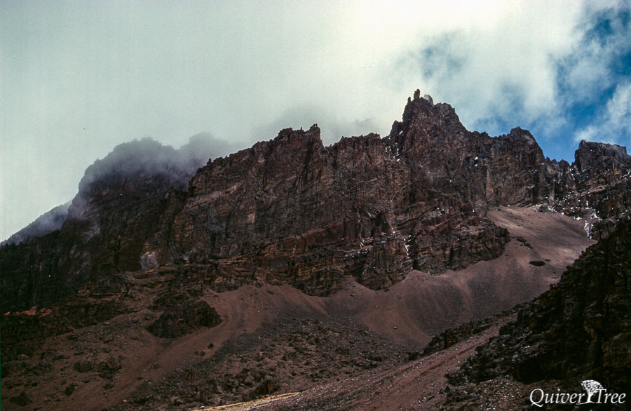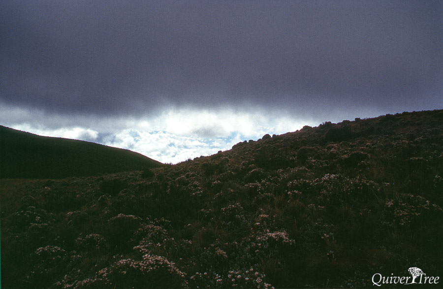 Den ganzen Tag über war es relativ kalt, windig und wolkig. Am Abend kehren wir zu den Horombo Huts zurück, da zeigt uns der Mawenzi sein freundliches Gesicht.