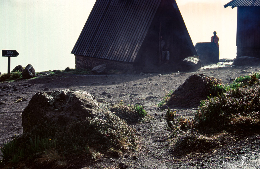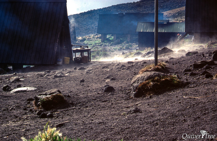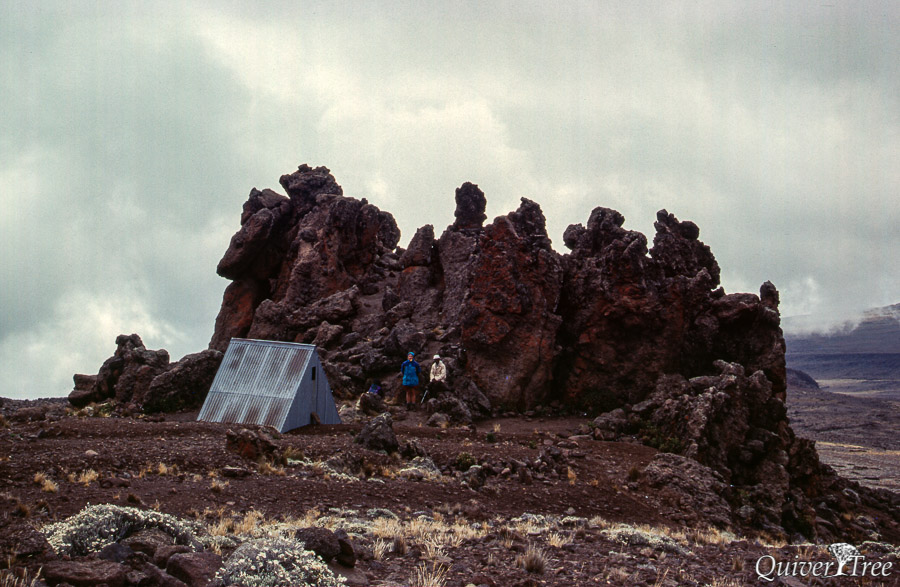 Wir erreichen die Mawenzi Tarn Hut auf 4310 m Höhe. Sie dient vermutlich als primitive Schutzhütte für Besteiger des Mawenzi. In den Alpen gibt es unzählige solcher Notunterkünfte, die im Falle eines Falles Leben retten können.