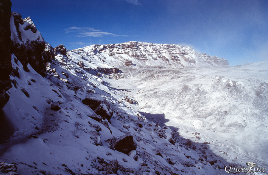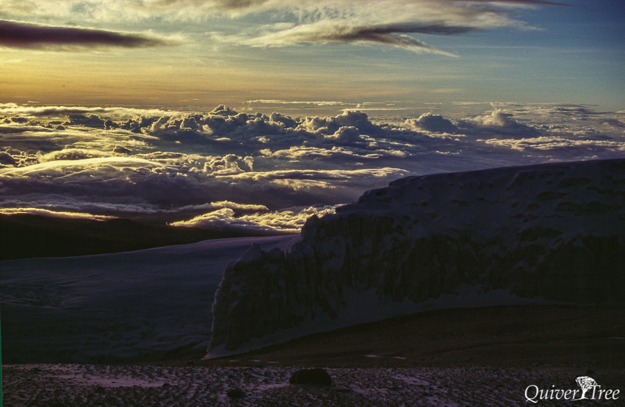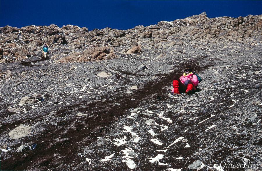 Beim Abstieg über den langen Rücken des Kibo bekomme ich leichte Kopfschmerzen, zum Glück die einzigen Anzeichen einer Höhenkrankheit. Allerdings hab ich mir die Fingerspitzen erfroren, das nachfolgende Taubheitsgefühl wird mich noch ein paar Wochen lang begleiten.